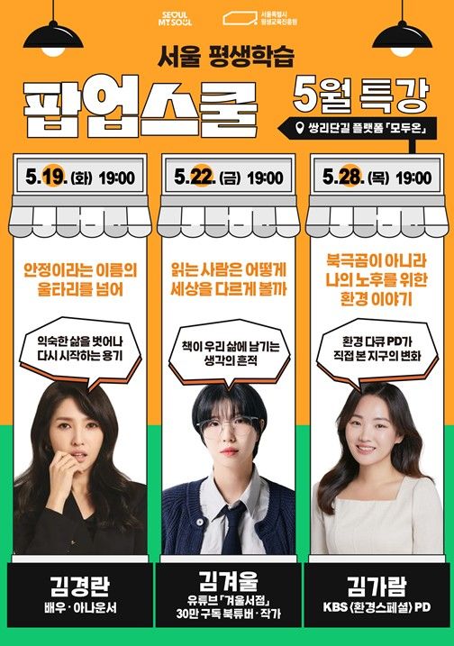 뉴한국방송뉴스통신사 신유철기자 기자 | 서울특별시평생교육진흥원이 지난 4월 도봉구 쌍문역 인근에 개관한 서울시 첫 역세권 평생학습 거점 ‘서울 평생학습 팝업스쿨’을 확대 운영한다. 시범운영 한 달간 500여 명이 참여했으며, 5월에는 정규강좌, 명사특강, 러닝숍 등 3개 영역에서 총 13개 과정을 편성하고, 650명의 시민 참여를 목표로 한다.