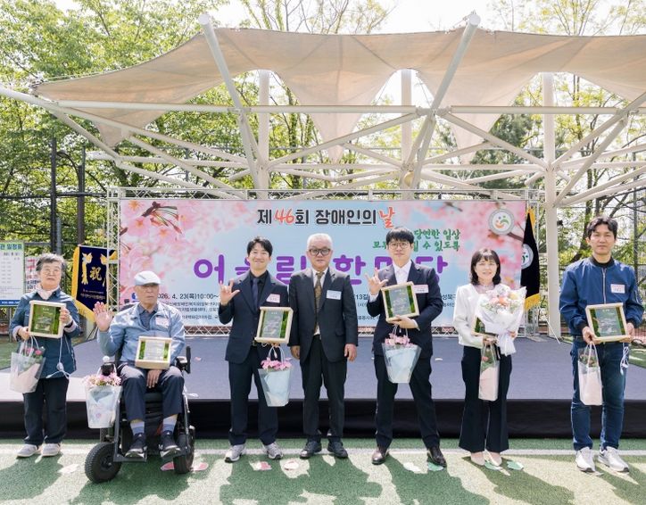 행사는 달빛하나어린이집 원아 20명의 합창으로 시작됐다. 이어 장애인의 날 유공자 표창, 축하공연, 장기자랑 등 프로그램이 진행됐다. 장애인식개선 부스에서는 수어퀴즈, 점자 책갈피 만들기, 시각장애인 역학사의 사주 체험 등을 운영해 참가자들이 장애에 대한 이해를 넓히는 시간을 마련했다.