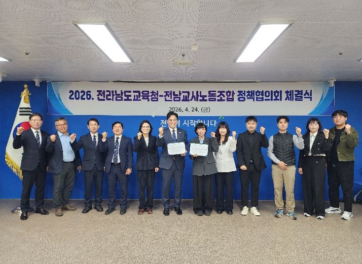 뉴한국방송뉴스통신사 김성의 기자 | 전라남도교육청과 전남교사노동조합(위원장 김신안)은 24일 전라남도교육청 중회의실에서 ‘2026년도 정책협의회 체결식’을 갖고, 건강한 교육 생태계 조성을 위한 공동의 노력을 약속했다.