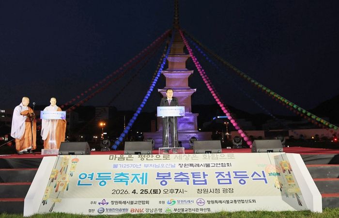 한편, 창원특례시는 이번 점등식을 시작으로 다양한 불교 행사를 이어갈 예정이다. 오는 5월 16일 오후 5시에는 마산합포구 3·15 해양누리공원에서 ‘봉축시민음악회’가 열리며, 5월 17일 오후 6시에는 진해구 중원로터리에서 제등행렬과 탑돌이가 진행된다.
