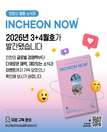 뉴한국방송뉴스통신사 신유철기자 기자 | 인천광역시는 도시의 혁신적인 정책과 차별화된 매력을 전 세계에 소개하는 영문소식지 '인천나우(Incheon Now)' 3·4월호(Vol. 98)를 발간했다고 밝혔다.