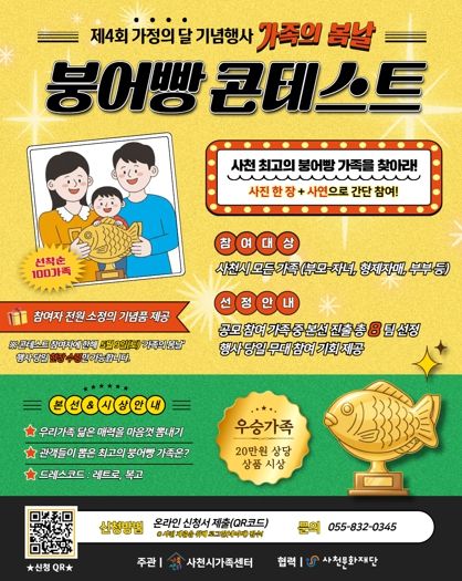 이번 행사는 가족 간 유대감 강화와 건강한 가족문화 조성을 위해 마련된 시민 참여형 행사로, 사천시가족센터가 주관하고 사천문화재단이 협력해 추진된다.