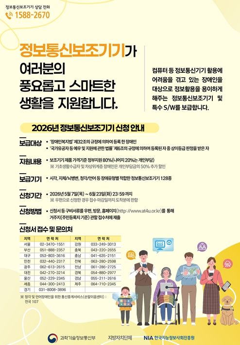 이번 사업은 장애유형별 맞춤형 정보통신보조기기를 지원하는 사업으로, 화면낭독 소프트웨어, 터치모니터, 음성증폭기 등 총 128개 제품이 보급 대상이다.