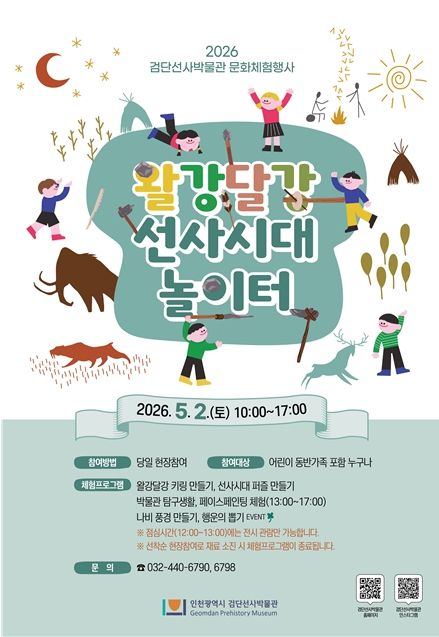 뉴한국방송뉴스통신사 신유철기자 기자 | 인천광역시 검단선사박물관은 오는 5월 2일, 가정의 달을 맞아 어린이 문화체험행사 ‘왈강달강 선사시대 놀이터’를 개최한다고 밝혔다.