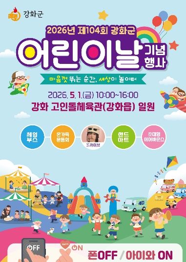 뉴한국방송뉴스통신사 신유철기자 기자 | 강화군은 제104회 어린이날을 맞아 오는 5월 1일 오전 10시부터 강화읍 고인돌체육관에서 어린이날 기념행사를 개최한다.