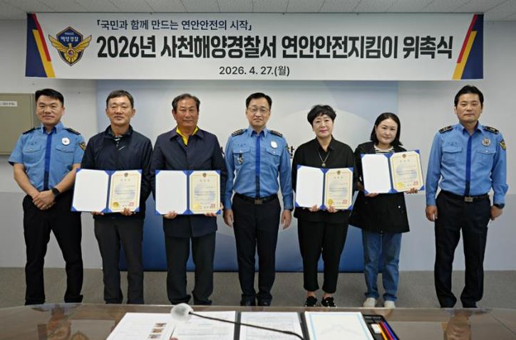 뉴한국방송뉴스통신사 신유철기자 기자 | 사천해양경찰서는 27일 연안사고 예방을 위해 선발된 ‘26년도 연안안전지킴이” 4명을 위촉했다고 밝혔다.