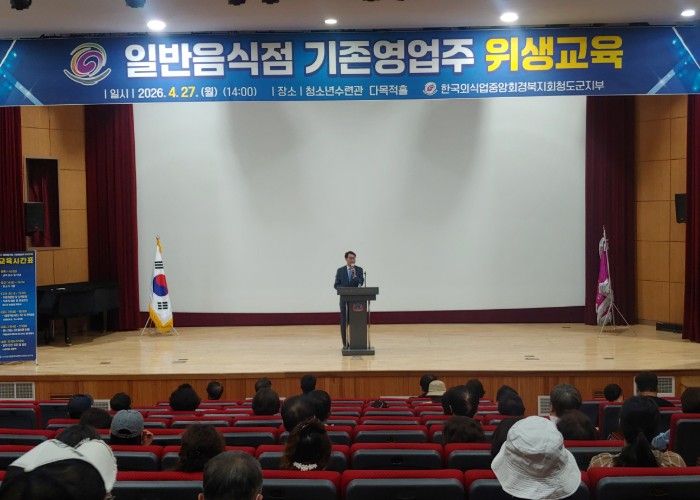 뉴한국방송뉴스통신사 신유철기자 기자 | 청도군은 27일 청소년수련관 다목적홀에서 2026년도 일반음식점 기존 영업주 위생교육을 실시했다.