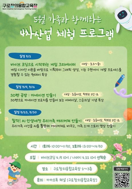 참여 신청은 구로창의융합교육장 누리집에서 선착순으로 접수하며, 프로그램별 운영 일정과 신청 기간 등 자세한 사항도 함께 확인할 수 있다.