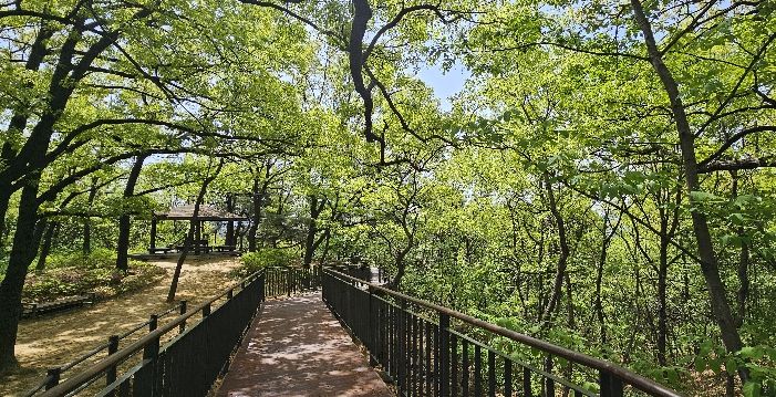 이 구간에는 경사가 완만한 나무 바닥(덱)이 조성돼 보행약자 등 누구나 안전하고 편안하게 숲길을 산책할 수 있다. 조명시설도 이번에 새로 설치돼 야간에도 안전하게 이용할 수 있다.