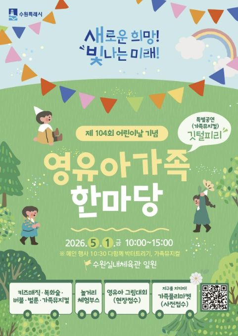 수원시 관계자는 “어린이날을 맞아 아이들이 즐겁게 뛰놀고 가족이 함께 소중한 시간을 보낼 수 있도록 행사를 준비했다”며 “영유아와 가족 모두에게 따뜻한 추억이 되는 하루가 되길 바란다”고 말했다.