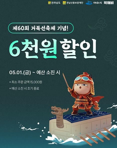 뉴한국방송뉴스통신사 신다은기자 기자 | 여수시는 제60회 여수거북선축제를 맞아 지역 소상공인 지원과 지역경제 활성화를 위해 공공배달앱 ‘먹깨비’ 할인 이벤트를 추진한다고 밝혔다.