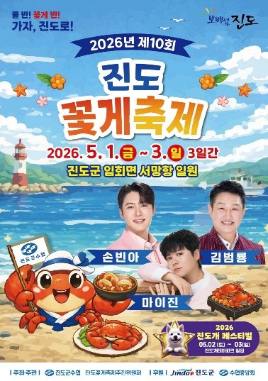 뉴한국방송뉴스통신사 신다은기자 기자 | 진도군은 봄 꽃게의 제철을 맞아 5월 1일부터 3일까지 3일간 임회면 서망항 일원에서 ‘제10회 진도 꽃게 축제’를 개최한다.
