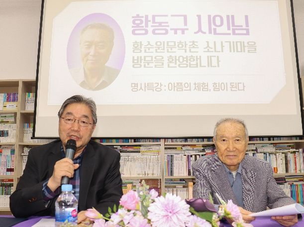 뉴한국방송뉴스통신사 신유철기자 기자 | 황순원 작가의 장남인 황동규(1938~) 시인이 지난 23일 서종면에 위치한 황순원문학촌 소나기마을(촌장 김종회)에서 열린 ‘2026 소나기마을 문학교실’에서 ‘아픔의 체험, 힘이 된다’를 주제로 특별 강연을 진행했다.
