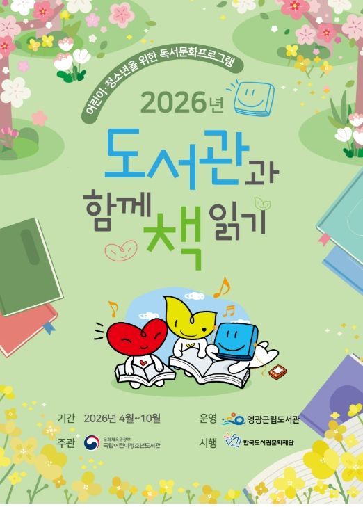 뉴한국방송뉴스통신사 신다은기자 기자 | 영광군은 국립어린이청소년도서관이 주관하는 '2026년 도서관과 함께 책 읽기' 공모사업에 2년 연속 선정됐다고 밝혔다.