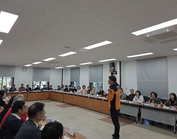 이번 교육은 오남읍 행정복지센터, 이·통장 협의회, 아파트 관계자 등 총 50여 명이 참석한 가운데 진행됐으며, 주택용 소방시설 자율 설치 문화 확산을 위해 단독경보형 감지기 지원 대상 및 설치 방법을 우선 안내하고, 미설치로 인한 화재 피해 사례를 공유했다. 이와 함께 공동주택 화재 인명피해 예방을 위한 우리집 대피계획 세우기, 층별 대피방법 교육, 아파트 관리주체의 역할과 책임을 강조하고 불법·이중주차 금지 등 주차질서 확립을 통한 화재 시 신속한 소방활동 여건 조성을 안내했다.