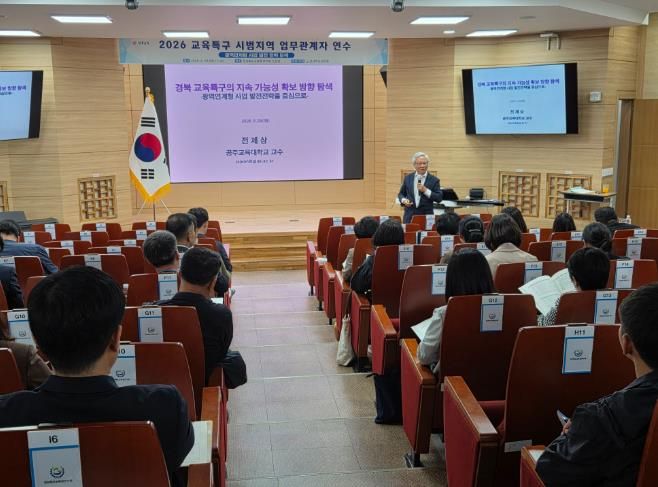 뉴한국방송뉴스통신사 신유철기자 기자 | 경북교육청은 28일 구미시에 있는 경상북도교육청연수원 소강당에서 도내 15개 교육특구 시범 지역의 교육지원청과 지자체 관계자 80여 명이 참석한 가운데 ‘2026 교육특구 시범지역 업무 관계자 연수’를 개최했다고 밝혔다.