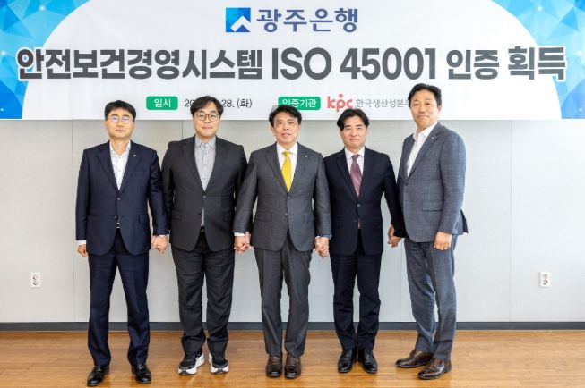 뉴한국방송뉴스통신사 김성의 기자 | 광주은행(은행장 정일선)은 28일 광주은행 본점에서 정일선 광주은행장과 강장진 한국생산성본부인증원장 및 주요 관계자들이 참석한 가운데, 안전보건경영시스템 국제표준인 ‘ISO 45001’ 인증 수여식을 개최했다고 밝혔다.