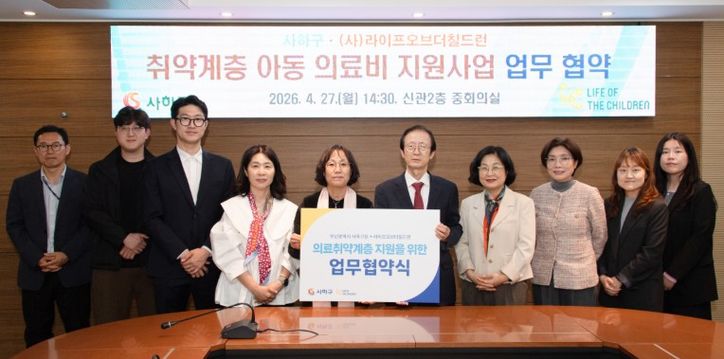 뉴한국방송뉴스통신사 신유철기자 기자 | 부산 사하구는 지난 27일 사단법인 라이프오브더칠드런과 ‘취약계층 아동 의료비 지원사업’ 업무협약을 체결했다.