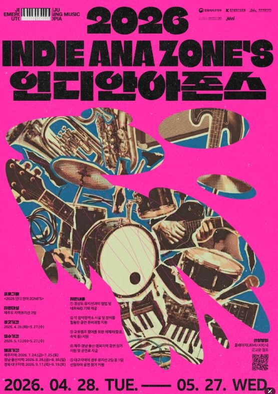 뉴한국방송뉴스통신사 신유철기자 기자 | 제주특별자치도와 (재)제주콘텐츠진흥원(원장 강민부)이 제주와 경상권 지역 뮤지션 간 협업과 교류 공연을 위한 프로젝트 '2026 인디 안아 Zone’s'참여뮤지션을 모집한다.
