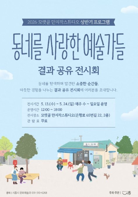 뉴한국방송뉴스통신사 신유철기자 기자 | 시흥시는 오는 5월 13일부터 24일까지 문화재생공간 모랫골 만지작스튜디오에서 2026년 상반기 프로그램 ‘동네를 사랑한 예술가들’ 결과 공유 전시를 개최한다.