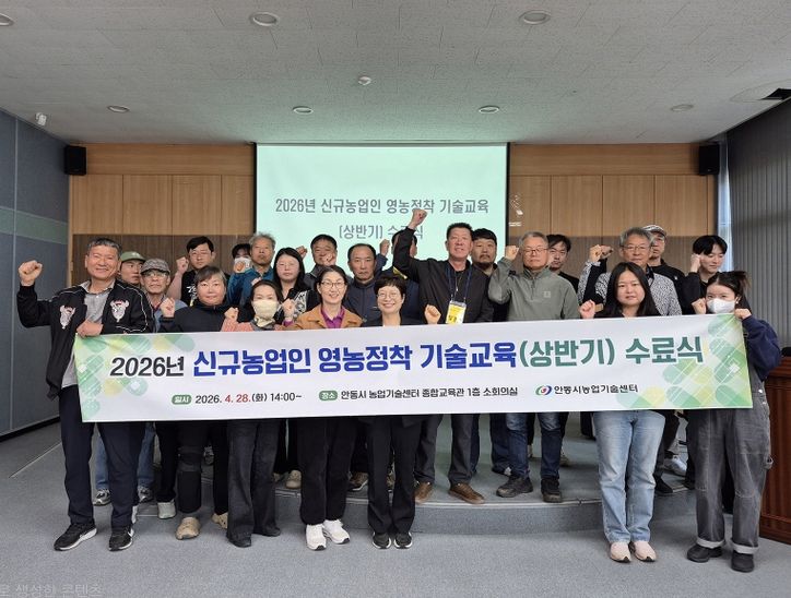 뉴한국방송뉴스통신사 신유철기자 기자 | 안동시농업기술센터는 지난 28일 ‘2026년도 신규농업인 영농정착 기술교육(상반기)’ 수료식을 개최하고 교육과정을 성공적으로 마무리했다고 밝혔다.