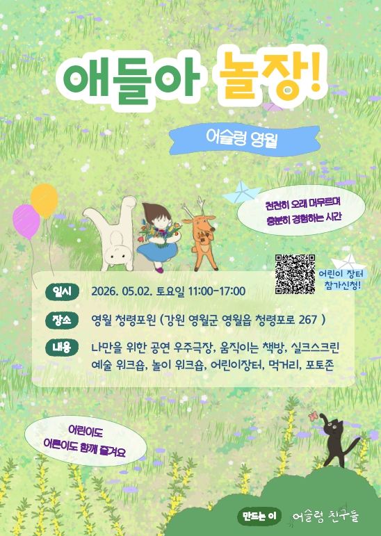 한편 어슬렁영월 마켓 '애들아 놀장'은 우천 시 5월 3일로 변경되거나 취소될 수 있다.