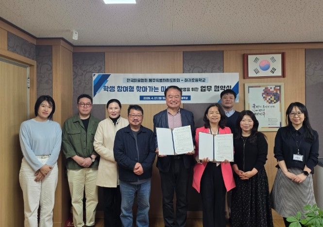 뉴한국방송뉴스통신사 신유철기자 기자 | 제주도교육청 하귀초등학교는 27일 한국미술협회 제주특별자치도지회와 ‘학생 참여형 찾아가는 미술관’ 운영을 위한 업무협약(MOU)을 체결했다.