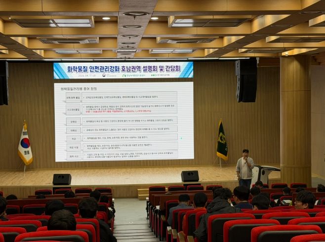 뉴한국방송뉴스통신사 신다은기자 기자 | 전남녹색환경지원센터(센터장 김은식 전남대 교수)는 지난 4월 17일, 전남대학교(여수) 산학연구관 국제회의실에서 ‘화학물질 안전관리 강화 호남권역 설명회 및 간담회’를 개최했다.