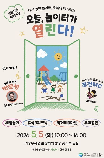 뉴한국방송뉴스통신사 신유철기자 기자 | 의정부시는 제104회 어린이날을 맞아 5월 5일 오전 10시부터 오후 4시까지 의정부시청 앞 평화의 광장 및 도로 일원에서 ‘2026년 의정부시 어린이날 기념행사’를 개최한다.