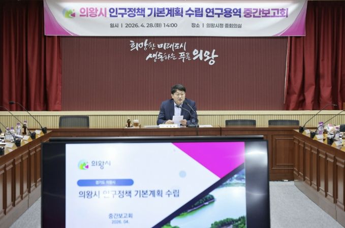 뉴한국방송뉴스통신사 신유철기자 기자 | 의왕시는 4월 28일 시청 중회의실에서 '인구정책 기본계획 수립 연구용역 중간보고회'를 개최하고, 의왕시 맞춤형 인구정책 방향을 논의했다.