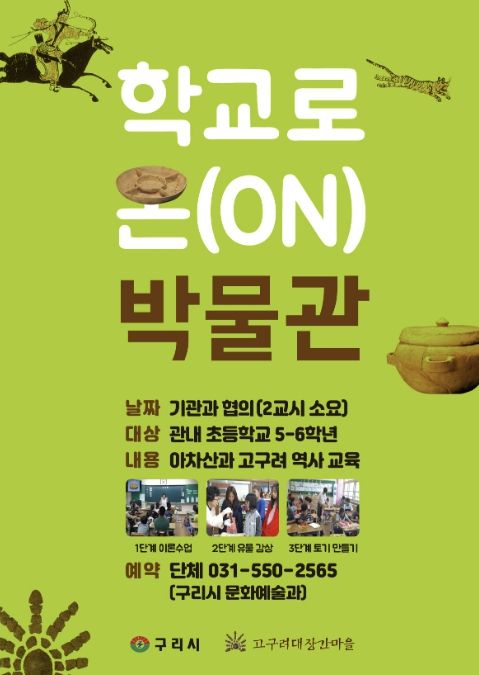뉴한국방송뉴스통신사 신유철기자 기자 | 구리시는 4월 28일부터 오는 9월까지 고구려 유물 상자를 들고 관내 초등학교를 찾아가는 ‘학교로 온(ON) 박물관’프로그램을 운영한다고 밝혔다.