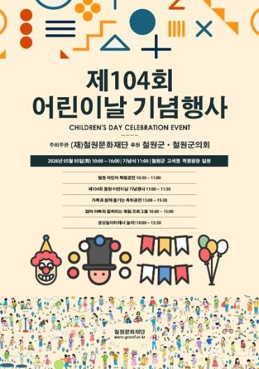 뉴한국방송뉴스통신사 양호선기자 기자 | (재)철원문화재단은 오는 5월 5일 어린이날을 맞아 고석정 일원에서 ‘제104회 어린이날 기념행사’를 개최한다고 밝혔다.