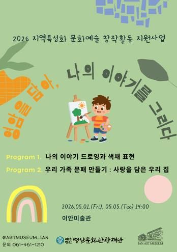 이안 미술관 박지현 담당자는 “이번 프로그램을 통해 다양한 영암 주민들이 가족의 의미를 되새기고, 어린이처럼 동심으로 돌아가 소통하며 소중한 추억을 만드는 계기가 되길 바란다”고 전했다.