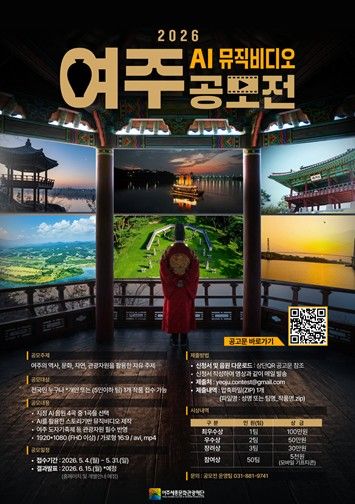 뉴한국방송뉴스통신사 신유철기자 기자 | 여주세종문화관광재단은 여주시 관광 콘텐츠를 활용한 시민 참여형 영상 제작 프로젝트인 '2026 여주 AI 뮤직비디오 공모전'을 개최한다고 밝혔다.
