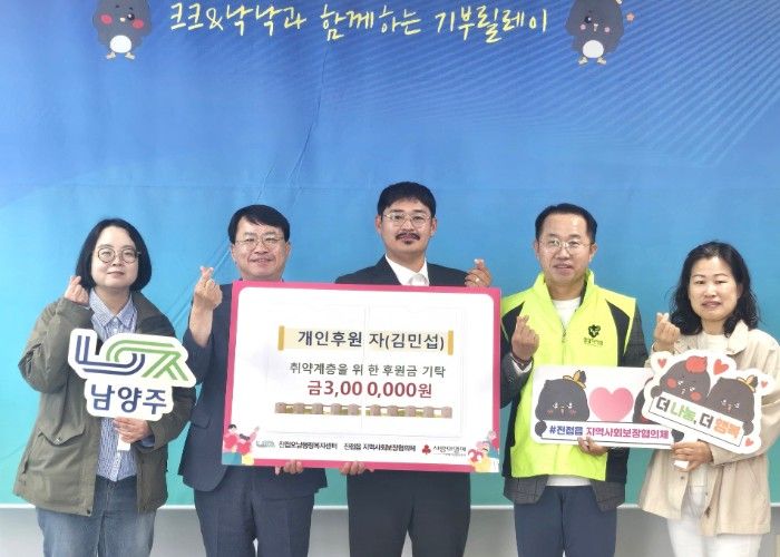 뉴한국방송뉴스통신사 신유철기자 기자 | 남양주시는 29일 진접오남행정복지센터에서 김민섭씨가 취약계층 지원을 위해 후원금 300만 원을 전달했다고 밝혔다.
