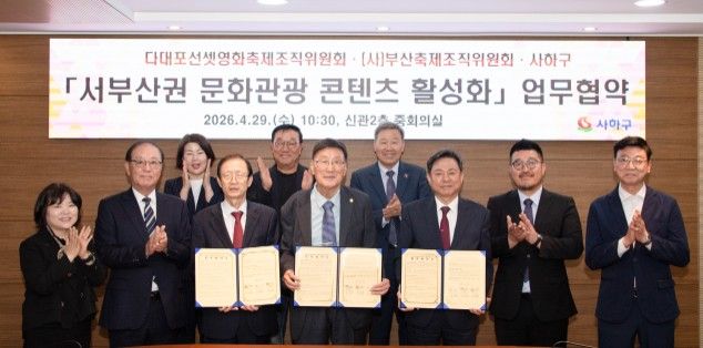 뉴한국방송뉴스통신사 신유철기자 기자 | 부산 사하구는 서부산권에서 개최되는 축제 및 문화 행사를 중심으로 지역 문화관광 콘텐츠의 발전 가능성을 함께 모색하고 지속가능한 협력 기반을 마련하기 위해 4월 29일 다대포선셋영화축제조직위원회, 부산축제조직위원회와 업무협약을 체결했다고 밝혔다.