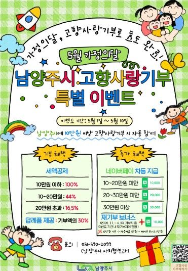 뉴한국방송뉴스통신사 신유철기자 기자 | 남양주시는 가정의 달을 맞아 5월 1일부터 10일까지 고향사랑기부 특별선물 증정 이벤트를 추진한다고 30일 밝혔다.