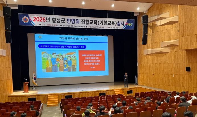 뉴한국방송뉴스통신사 양호선기자 기자 | 횡성군이 민방위 대원의 재난 대응 역량 강화를 위해 4월 29일 횡성문화예술회관 대강당에서 ‘2026년 민방위 집합교육’을 실시한다고 밝혔다.