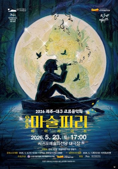 관람료는 전석 1만 원이며 초등학생 이상 관람 가능하다. 문화소외계층 대상 전화접수는 2026년 5월 6일(수) 오전 10시부터 선착순으로 진행되며, 일반 관객 온라인 예매는 5월 7일(목) 오전 10시부터 서귀포 E티켓을 통해 예매할 수 있다.