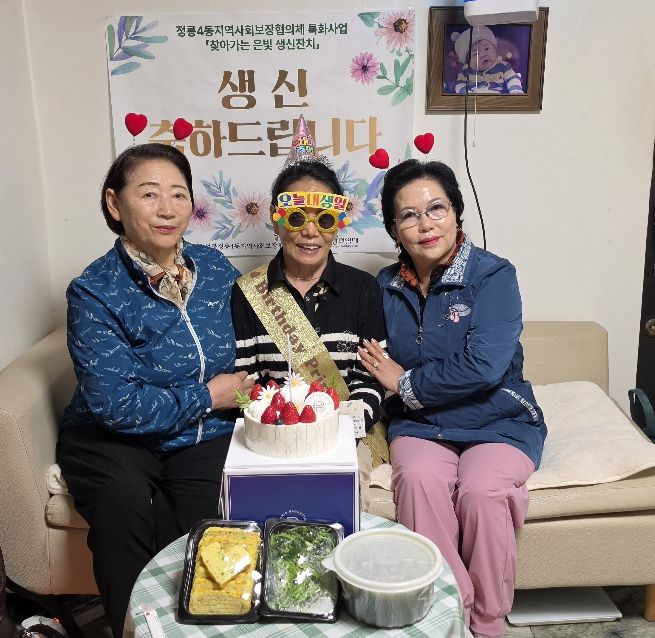 뉴한국방송뉴스통신사 신유철기자 기자 | 서울 성북구 정릉4동 지역사회보장협의체가 4월 특화사업 ‘찾아가는 은빛 생신잔치’를 처음 추진하고 관내 독거어르신 가정을 방문해 생신을 축하했다.