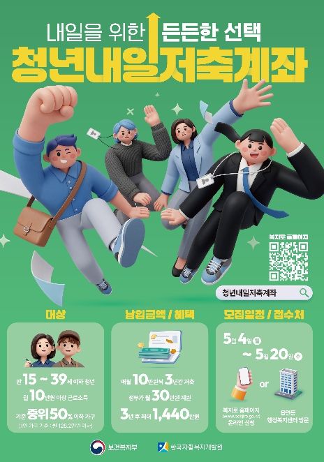 ‘청년내일저축계좌’는 경제적 기반이 취약한 청년들이 꾸준한 근로와 저축을 통해 자산을 형성할 수 있도록 정부가 지원금을 매칭해 주는 제도다.