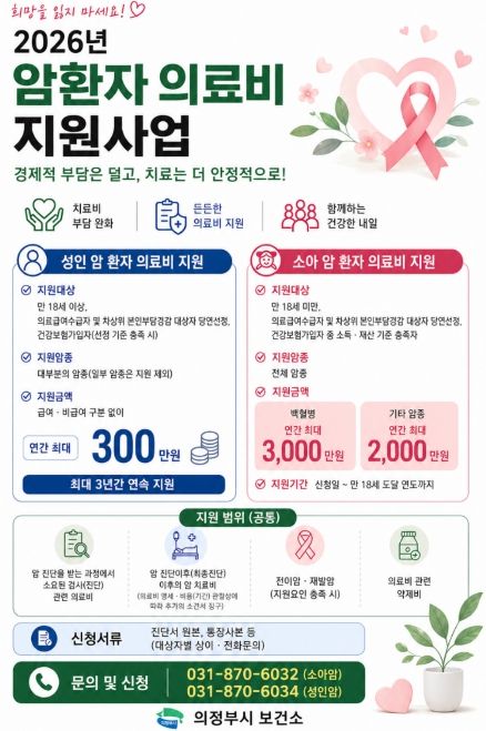 김진혁 보건정책과장은 “암환자 의료비 지원은 치료를 지속하는 데 중요한 기반”이라며 “앞으로도 대상자 관리의 정확성과 접근성을 높여 시민이 체감할 수 있는 건강복지 서비스를 제공하겠다”고 말했다.