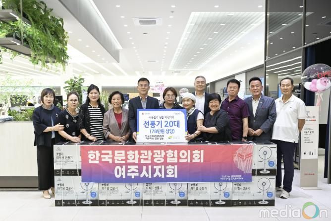 뉴한국방송뉴스통신사 신유철기자 기자 | 지난 8월 11일 한국문화관광협의회 여주시지회 임원들은 에너지 취약계층을 위한 냉방용품으로 선풍기 20대(76만원 상당)를 여주시에 기탁했다.