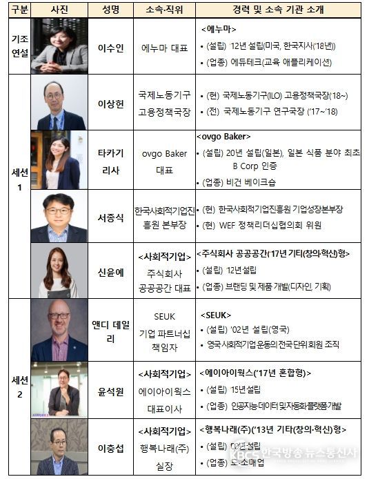 이번 행사는 학술적 담론 중심이 아닌, 현장과의 소통과 공감 형성을 중시하여, 국내외 사회적기업 종사자와 함께하는 토크콘서트로 시작했다. 이어 에듀테크 기업인 에누마 대표의 기조 연설과 2개 세션별로 다양한 국내외 사례를 발제하고 토론하는 방식으로 진행됐다.