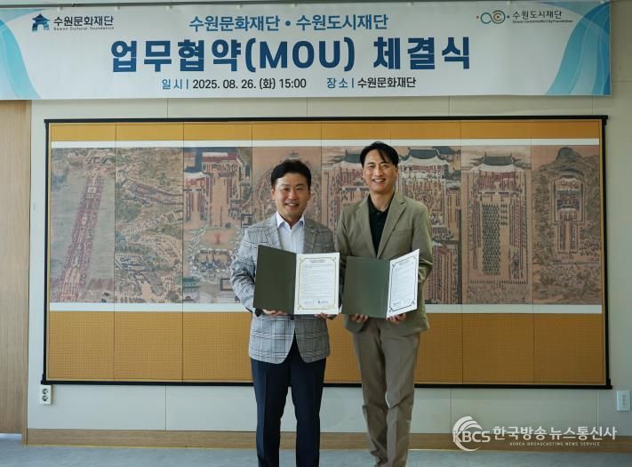 뉴한국방송뉴스통신사 신유철기자 기자 | 수원문화재단은 지난 26일 수원시의 문화예술 분야 상호발전 및 활성화를 위해 수원도시재단과 업무협약을 체결했다.
