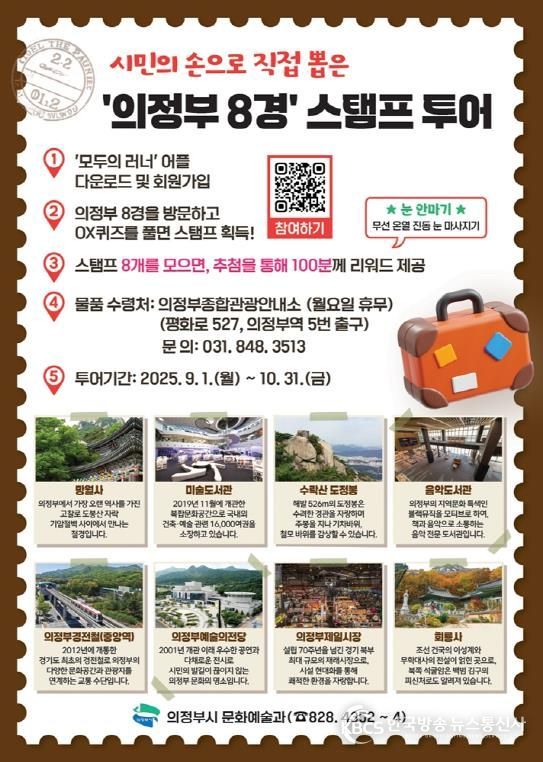 뉴한국방송뉴스통신사 신유철기자 기자 | 의정부시는 9월 1일부터 10월 31일까지 2025년 하반기 ‘의정부8경 스탬프투어’를 개최해 시민과 관광객을 맞이한다.