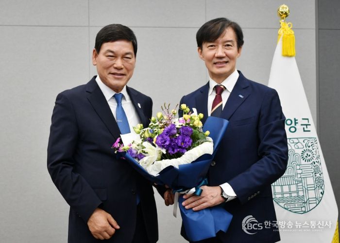 뉴한국방송뉴스통신사 신유철기자 기자 | 정철원 담양군수가 27일 담양군청을 방문한 조국 조국혁신당 혁신정책연구원장과 만나 지역 현안을 논의하고 당 차원의 협력을 요청했다.