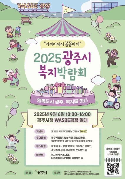뉴한국방송뉴스통신사 신유철기자 기자 | 광주시는 오는 9월 6일 광주시청 WASBE광장에서 ‘가까이에서 꼼꼼하게, 2025 광주시 복지박람회’를 개최한다고 29일 밝혔다.
