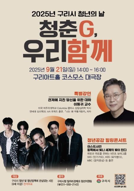 뉴한국방송뉴스통신사 신유철기자 기자 | 구리시는 오는 9월 21일 오후 2시 구리아트홀 코스모스 대극장에서 ‘2025 구리시 청년의 날- 청춘G, 우리 함께’ 행사를 개최한다.