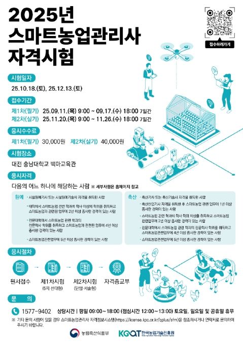 농식품부 김정욱 농식품혁신정책관은 “스마트농업관리사 자격제도는 농업혁신의 중심축으로 자리할 것”이라며, “ICT 기반 농업 생태계가 확대되는 지금, 자격시험을 통해 스마트농업의 확산과 고도화를 가속화하겠다”고 강조했다.